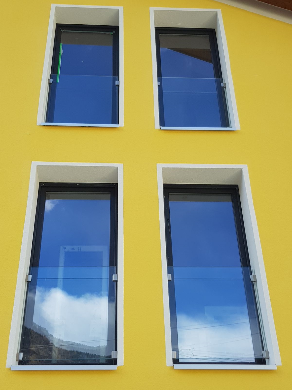 Parapetti per interni ed esterni con vetri stratificati di sicurezza di varie finiture e svariate tipologie di attacchi in acciaio.